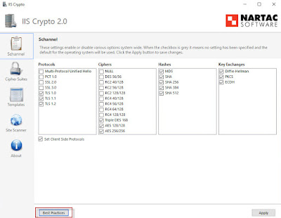 Sorunun çözümü için buradan IIS Crypto uygulamasını indirip Best Practices  butonuna tıklamanız yeterli olacaktır.